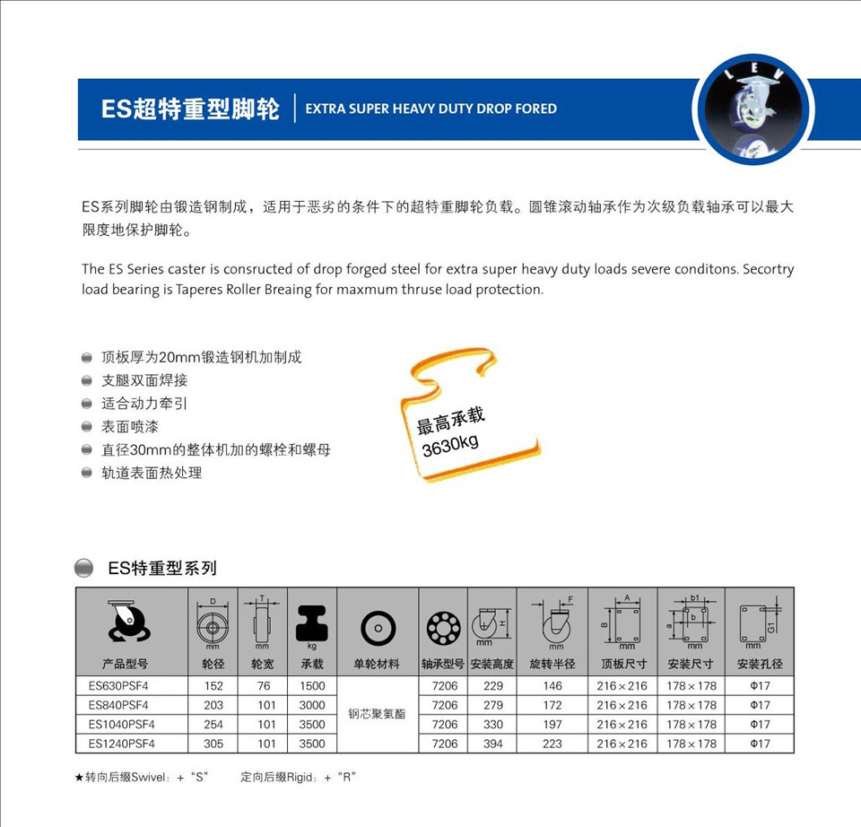 名 稱: | 超特重型鋼芯聚氨酯萬向-土黃 |